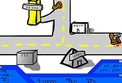 큰 정육면체 형태로, 각 방향으로 돌아가게끔 만들어져서 흩어진 각 면의 색깔을