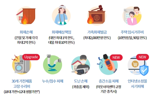 - 화재손해 : 건물 및 가재 각각 최대 2억원 한도