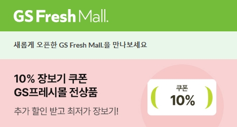 홈페이지에서 제공하는 10% 장보기 쿠폰도 다운받아 이용할 수 있으며, GS Fresh Mall 10% 할인 및 쿠폰 중복사용이 가능합니다. 품목당 최대 2천원까지 할인되고, 일부상품은 제외입니다.