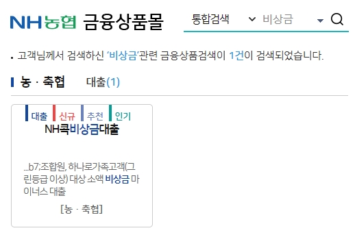 NH농협 금융상품몰에 접속하여 NH콕 비상금대출 상품을 찾아볼 수 있는데요, 농협 소액대출 상품중에 하나입니다. 참고로 올원 비상금대출 상품은 지난 2023년 4월 24일부터 판매가 중단되어 가입이 불가한 상태입니다. 기존 가입고객에 대한 계약내용은 변동이 없으며, 기타 자세한 사항은 창구에서 안내받을 수 있습니다.