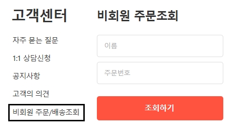 비회원 주문시에는 로그인 화면 > 비회원 주문조회 선택 > 이름/주문번호 입력 메뉴순으로 들어가셔서 배송관련 상세정보를 확인할 수 있습니다.